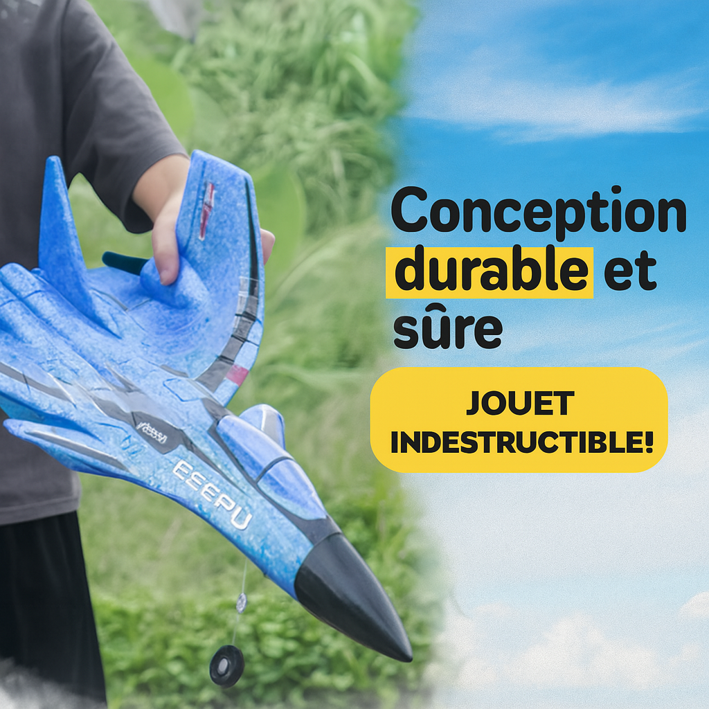 Construit en mousse EPP légère, notre avion est anti-collision et écologique. Le silicone anti-choc ajouté assure une protection optimale de l’appareil pendant le vol. Il peut encaisser les chocs sans risque de casse ou de dommages. De plus, son matériau est totalement imperméable.